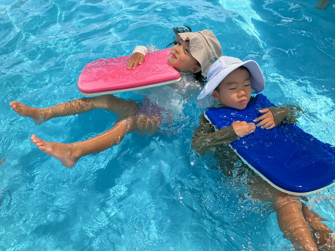 最後のプール遊びの日。名残惜しそうに、思い切り楽しむ事が出来ました。今年のプール遊びの中では、色々なことに挑戦!!ビート板を持ってバタ足、上を向いて伏し浮き、ヘルパーを使って泳ぐなど・・・最後には、自分の力で潜ったり泳いだりする事が出来るようになりました。できるようになったことを、みんなで見合ったり、認め合ったりすることで自信につながったのかなと感じました。今年は、プール遊びをたくさんすることが出来たので楽しい思い出もいっぱいできてよかったです。